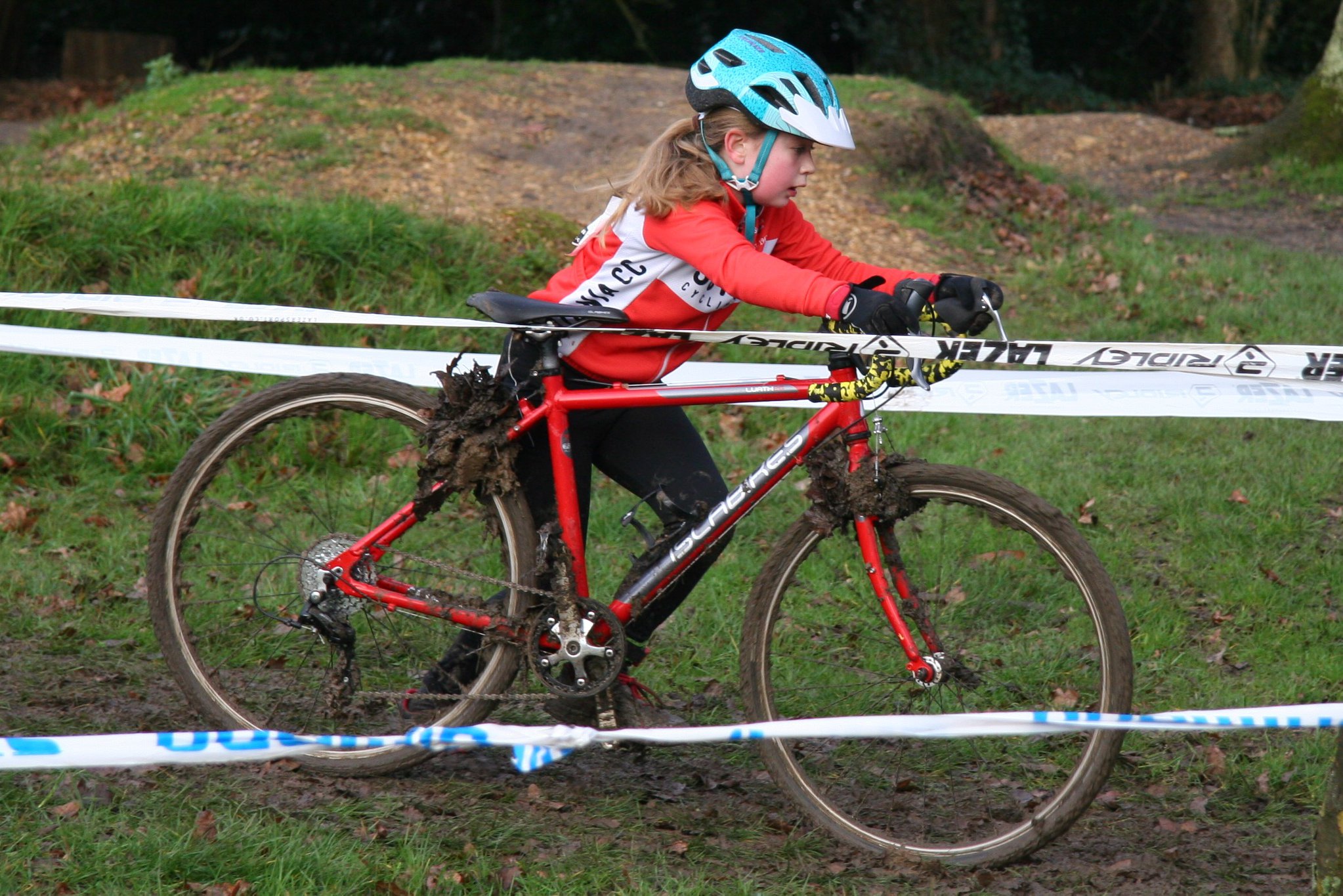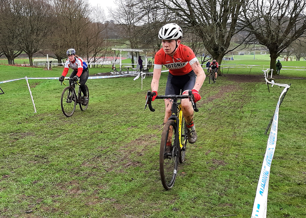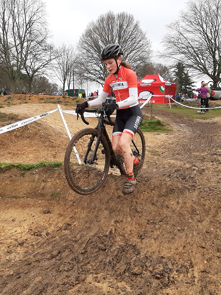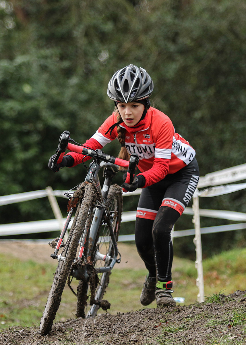 The U14 race riders had to negotiate a much larger course and organiser Alex Forrester used all his Belgium CX knowledge to pack the course with endless off-camber hills, steps, hurdles, mud and an exciting loop over the BMX track. Monty's sister Ruby had a great start to the U14 girls race and she was well up in the field until a fall and an open elbow saw her drift back. She kept riding though and delayed a visit to the first aider until after the finish.