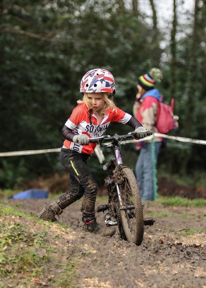 Many of our riders and parents made the short trip to Andover where the Wessex co-op team led by Alex Forrester and group of volunteers had laid out a difficult technical course for our youngsters. On offer were hurdles to jump over, a deep muddy puddle, a 180 degree bend on an off-camber climb and a steep zig-zag and slippery downhill. The start and finish were on a tarmac straight and this gave the event a feeling of taking part in an international elite event! The tarmac also meant faster starts and this did mean a few riders had a crash. From our riders Benji came closest to a crash after a (near) touch of wheels but he showed good skill to control his slide and stay upright.