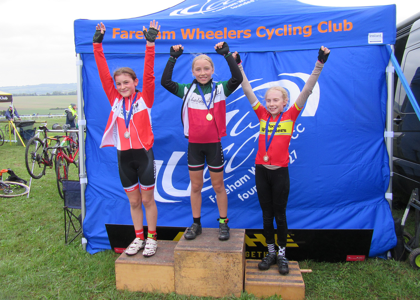 In the U8s all our riders rode confidently in the wet conditions, Fred finishing 3rd boy and Tilly winning the girls race with Tess 2nd and Eve 3rd.