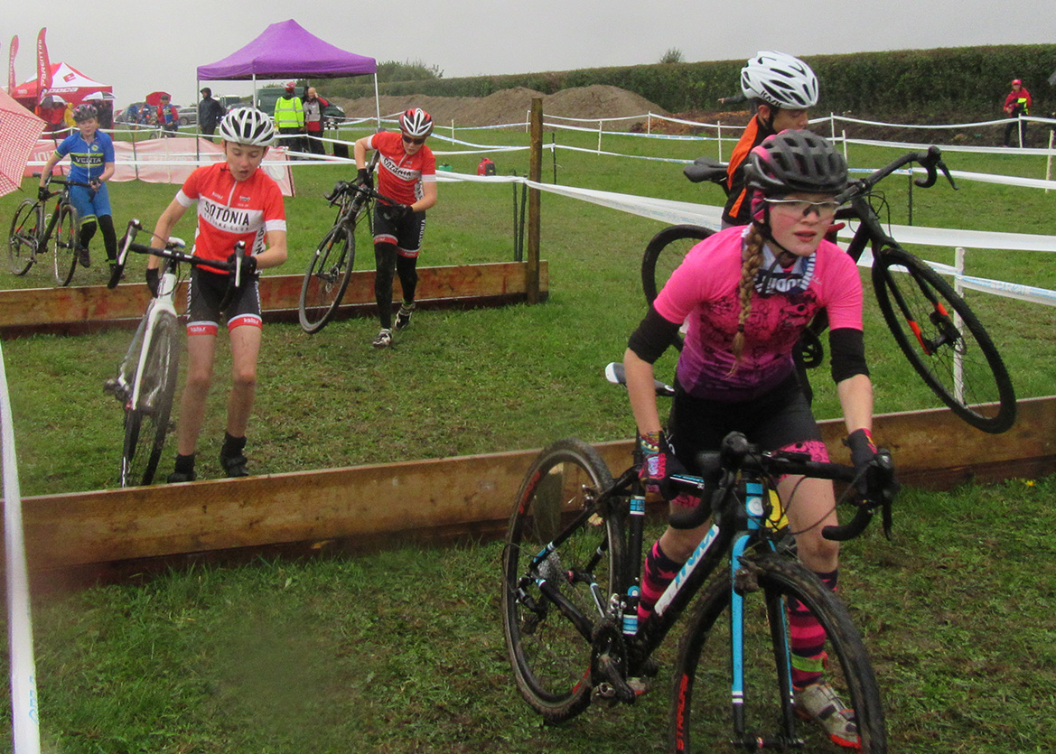 Round 4 of the Parentini Wessex CX league moved closer to home with a return to Droxford near Bishops Waltham and a super impressive 34 Sotonia youth racers (part of a 52 strong club line up and a new record number) were treated to a second moto-x venue in as many weeks. Overnight rain again added mud, especially for the fearsome "Hecklers Hill" which the U14s and U16s had to contend with. Elsewhere we had low barriers which many of our young racers managed to ride over - special mention to Leo Darnton who rode them in his first U8 race and without any prior experience!
