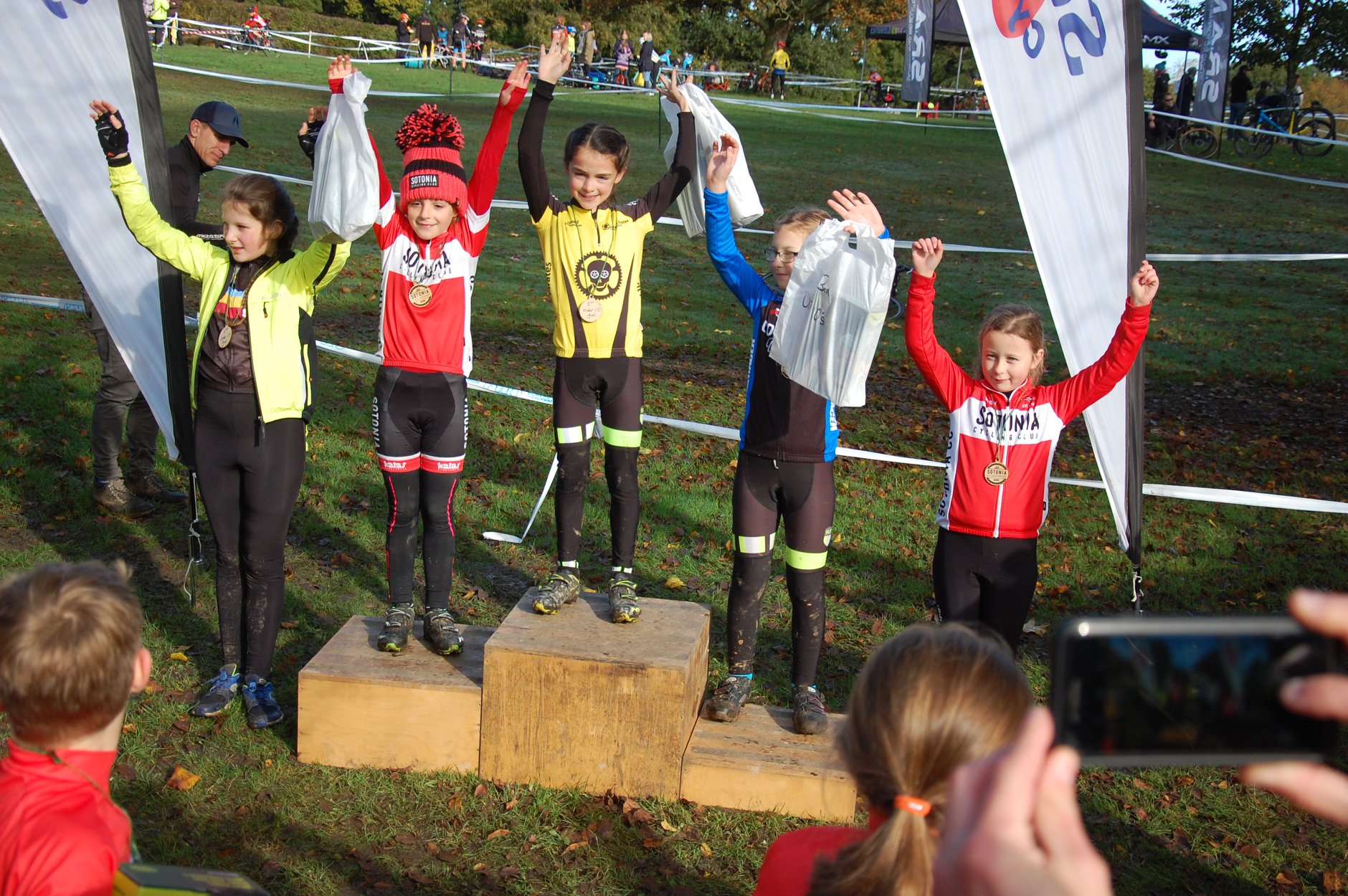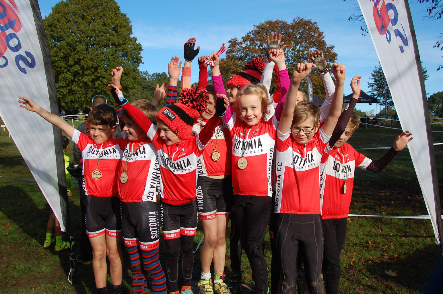 The highlights of the day were Eve, Jaya and Tilly giving the U8 Girls podium photo a distinct Sotonia feel, Tom once again racing strongly to get a medal, Marit using the interesting course to stay on task and finish 2nd U10 Girl, Hannah getting her reward for sticking with racing and appearing in the podium photo, Niclas getting stronger every race and being first U12 Sotonia rider, Charlie/Aaron/Tom and Benji giving a strong Sotonia presence in the U12 boys race, Izzy once again having a good race with her rival Lauren Charles, Skye/Ella and Poppy negotiating the extra U12 course difficulties really well, Emma getting a well deserved silver medal and George/Louis/Samuel showing how good a rider everyone can become with years of experience.