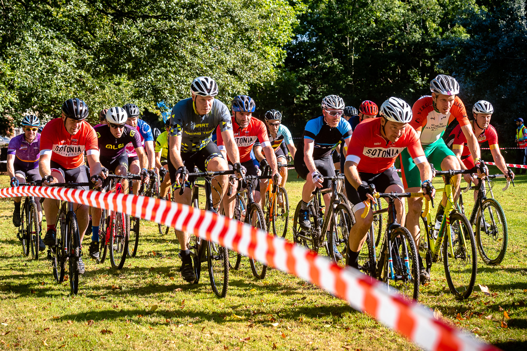 After three dry September rounds of the Miche Wessex Cyclocross league, the Gods of Cross decided enough was enough and the heavens duly opened in early October ahead of round four with hosts, Reading CC, working hard to lay out the course early on race day. Riders faced the classic parkland parcours and twisting single track of Prospect Park. In the sunshine however, it was to be no mud bath as the ground dried in most parts with a high pace to some cracking race action.