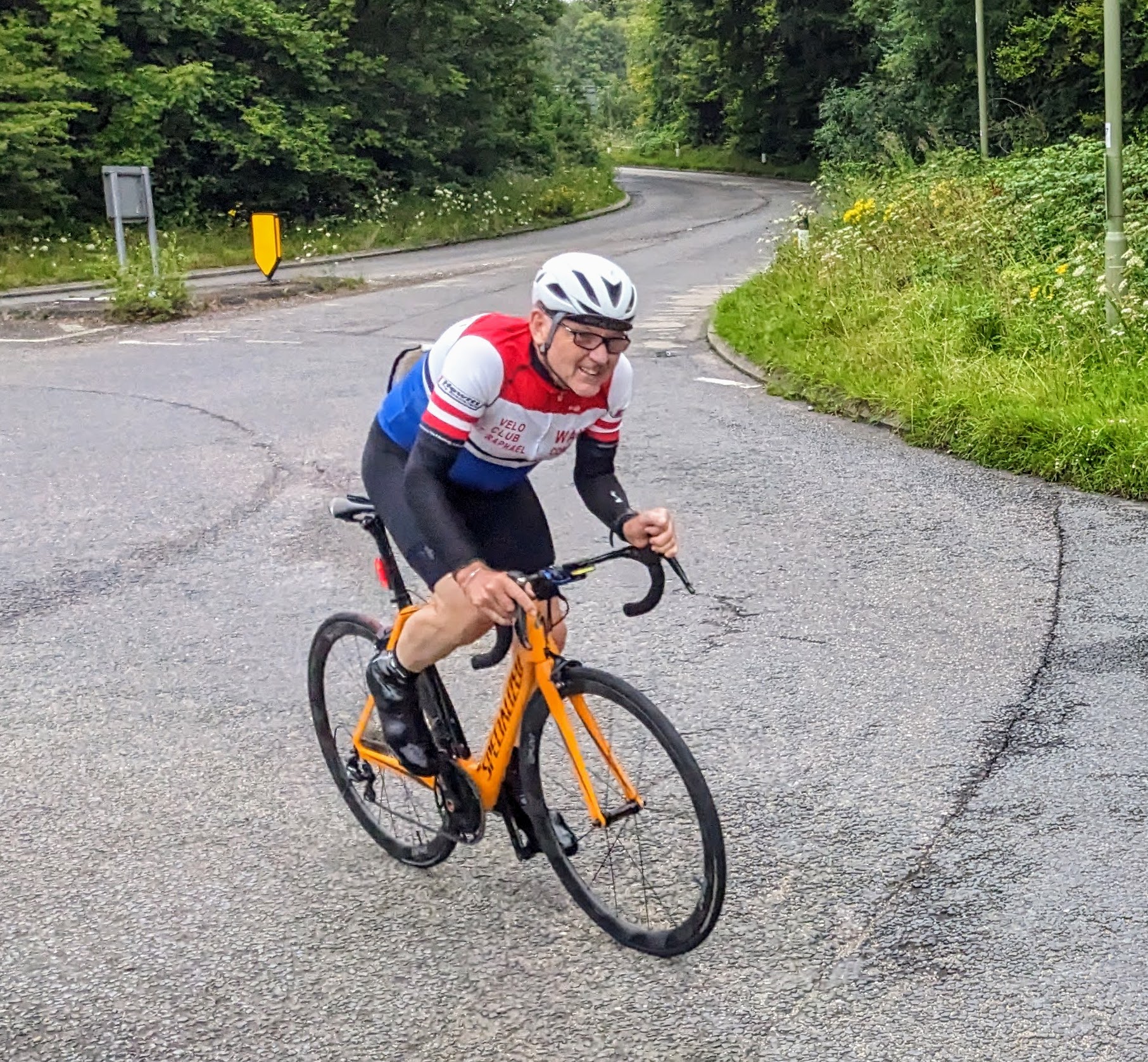 Making the most of the conditions was 18 year old Hamish Hunter from Fordingbridge, who had celebrated his birthday only 2 days before. Hamish who started his career with Sotonia, but these days rides for VC Venta, ascended the hill in 2 minutes 31 seconds. Runner up for the promoting club was Oliver Starkey in 2.42, while the third fastest time was recorded by Paul East who had come all the way down from Reading to ride as he had been unable to get a ride in the National Hill Climb championship which was taking place the same day 'oop north'.